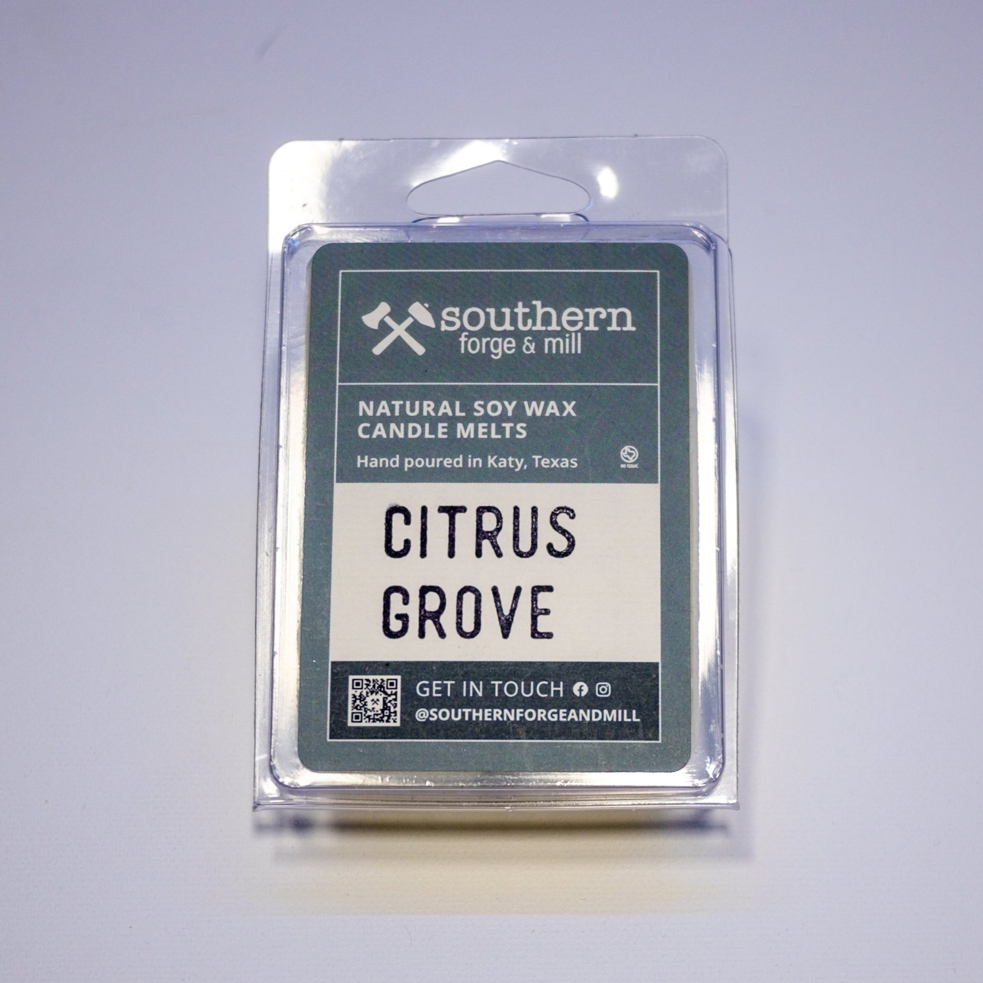 Our hand poured candles are all natural, using soy wax and wood wicks. We offer three sizes of our candles. Our 8oz candle burns for 40+ hours and 14oz candle is 80+ hours The wood wicks crackle as they burn and have a beautiful flat flame. The melts contain 6 cubes, and each cube will last 2 to 3 days in a warmer.